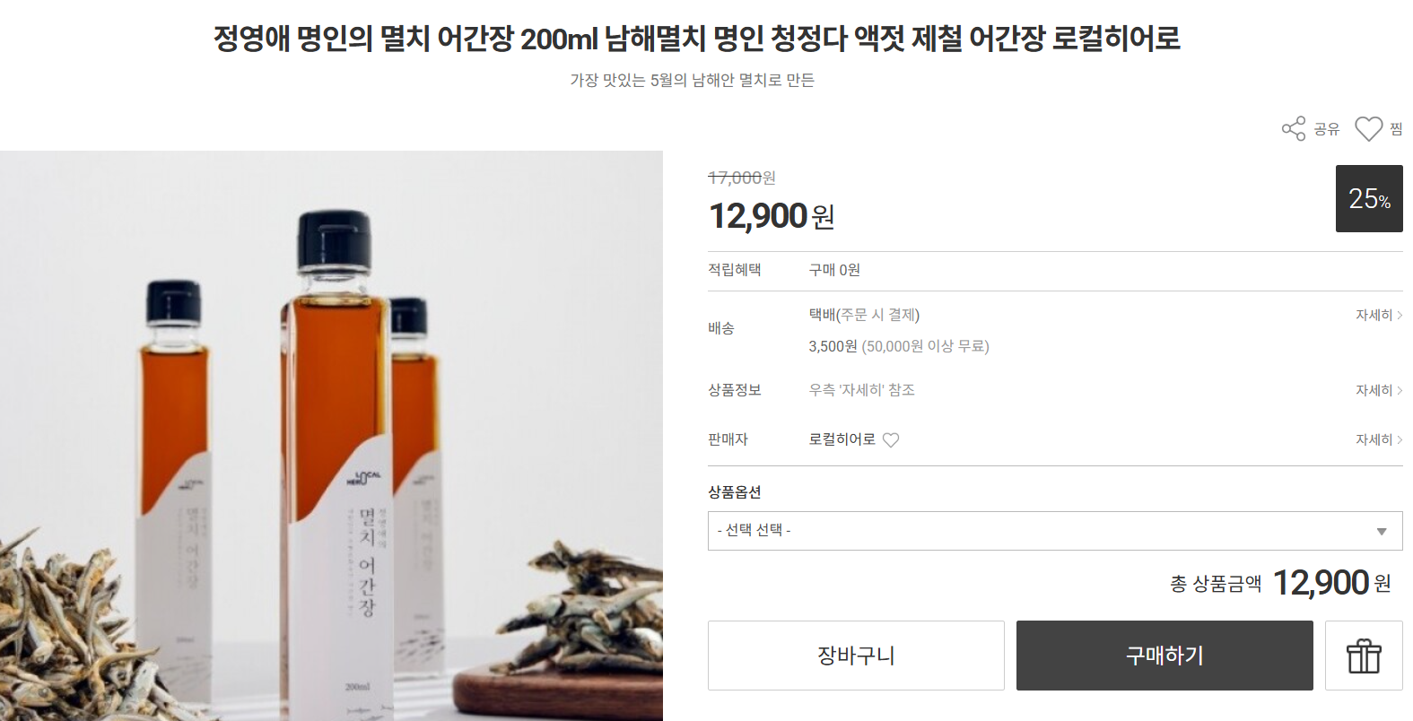 반응형정영애 명인의 멸치 어간장 200ml 남해멸치 명인 청정다 액젓 제철 어간장 로컬히어로