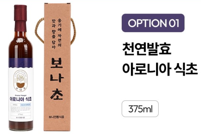 - 아로니아 발효식초: 안토시아닌이 풍부해 항산화와 면역력 강화에 도움.