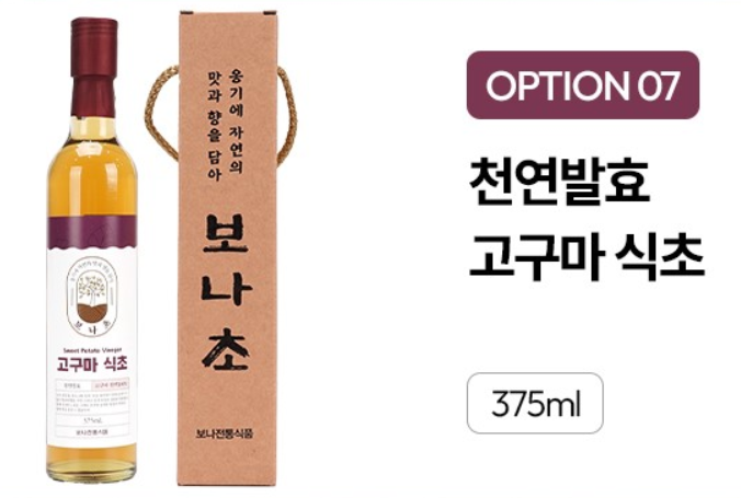 - 고구마 발효식초: 풍부한 식이섬유로 장 건강 개선.